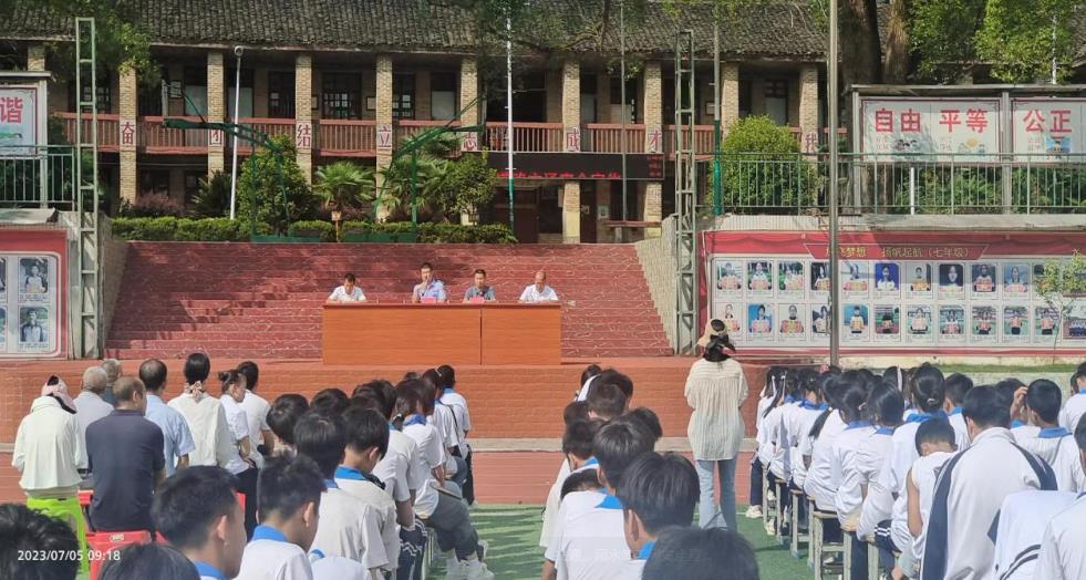 为了进一步助力校园法治建设,增强学生的法律意识和自我保护意识,杜绝校园欺凌,营造文明、平安、和谐的校园育人环境。我校法治副校长杨所长、司法所唐所长于2023年7月5日进校园宣讲法治教育及防溺水防交通事故等安全知识。
