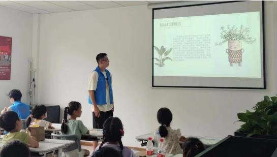 活动期间,我团成员满怀热情,积极引导孩子们参与到活动中来。活动的第一个环节是有关环保PPT的讲解,我团成员细心解说,认真将每一个垃圾分类的小常识讲给孩子们听,以授课的形式让孩子们理解垃圾分类对环境保护的重要性。