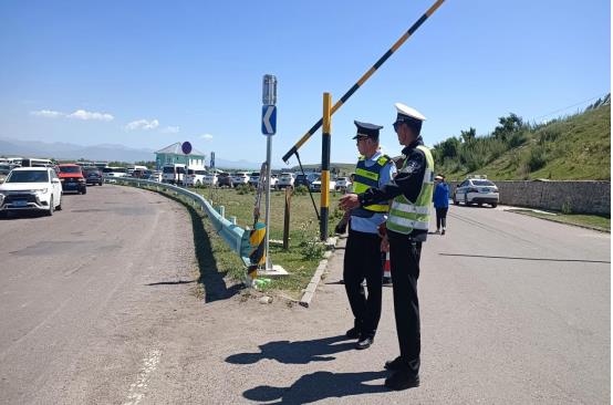 疏导交通确保交通安全。7月16日昭苏执法大队联合昭苏县公安交警大队在G577线管辖路段的昭苏县湿地公园、昭苏县天马文化园、油菜花打卡地等车流量较大的重点景区开展交通疏导工作,全力以赴做好旅游节期间道路交通安全工作,切实为游客出行营造安全舒心的交通环境。
