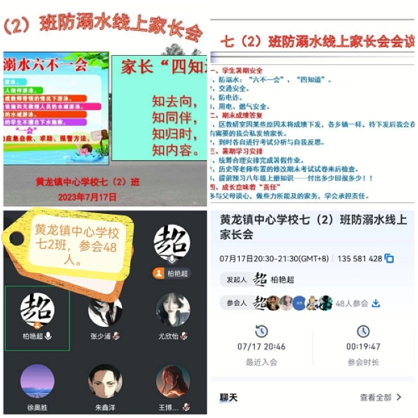近日,气温依然居高不下,为进一步落实防溺水安全教育工作,提高学生及家长防溺水安全意识,切实预防溺水事故发生,襄州区黄龙镇中心学校于7月17日和18日两天内,逐班召开了“防溺水”专题线上家长会。