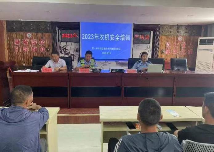 培训班上,第一师市场监管综合行政执法支队三大队与农机驾驶员签订农机安全承诺书150份,发放道路交通安全宣传册150份。