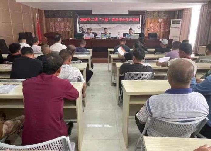 为严厉打击农机黑车非驾、无证驾驶、酒后驾驶等违章作业行为,8月17日,新疆兵团第一师市场监管综合行政执法支队三大队联合金银川垦区公安局交警大队二团新井子镇中队、二团新井子镇农业发展服务中心,举办了由二团新井子150名农机驾驶员参加的农机“三秋”安全培训班。