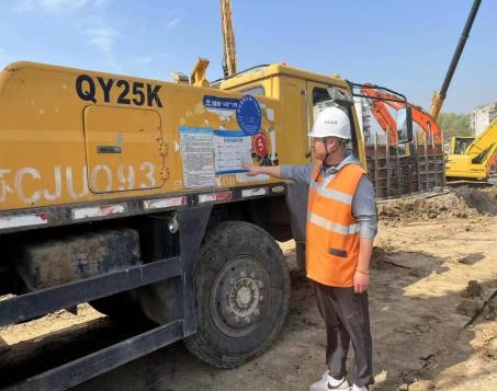 图为徐州复兴南路南延监理站现场专监殷允强烈日下查验大型机械