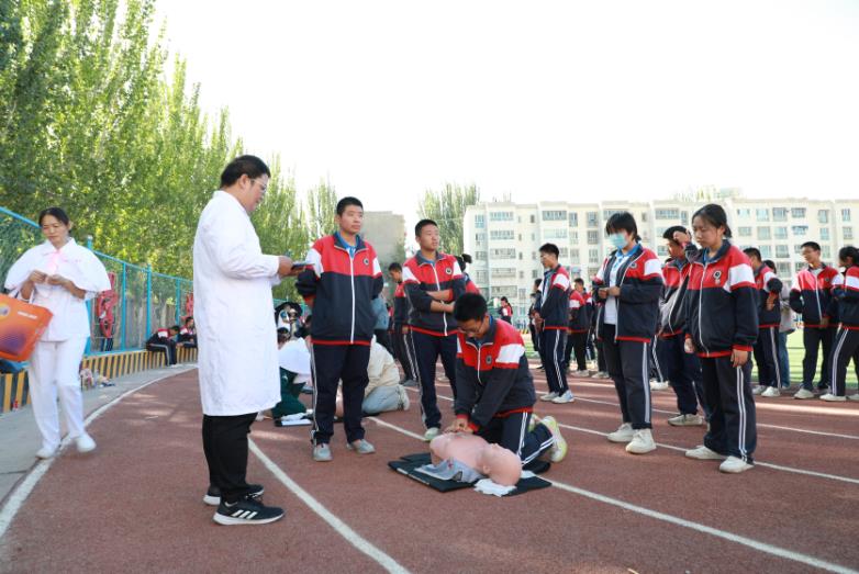 9月6日,第一师医院护理部副主任刘秀珍带领10名医护人员组成志愿护理服务队,来到第一师第二中学高中部开展急救知识进校园活动,教授师生掌握心肺复苏、自动体外除颤仪、四肢骨折包扎、特殊伤员搬运方法等,提高师生应对突发事件和意外伤害的应变能力。