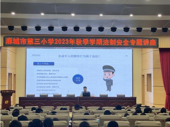 为进一步增强未成年人遵纪守法和安全防范意识,促进未成年人健康成长,构建平安和谐的校园,持续推进未成年人保护和预防未成年人犯罪工作,一直以来学校高度重视法制安全教育工作。9月6日,麻城市第三小学邀请法制副校长进校园开展了新学期法制安全知识讲座。