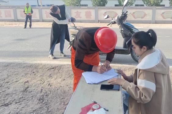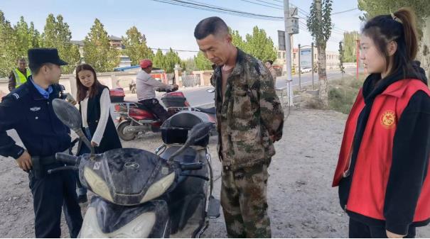 实验林场管委会枣林社区警务室民警与社区干部混合编组开展行人、非机动车交通违法行为专项治理,深入辖区农村广泛开展“一盔一带”安全守护宣传活动,进一步提升农村社区交通参与者的交通安全意识和文明出行意识,持续巩固文明礼让品牌特色。