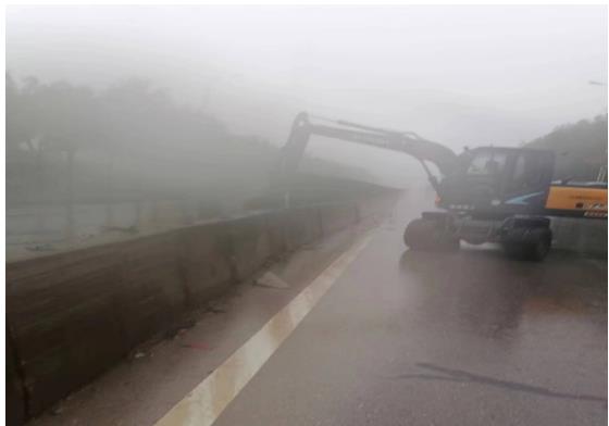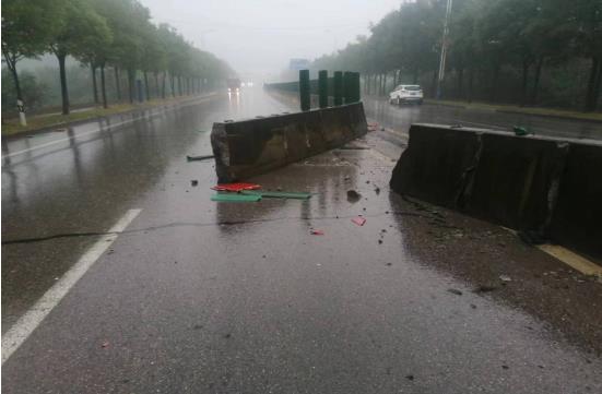 现场,由于撞击猛烈,不少石墩被撞飞到车道上,现场一片狼藉。为防止次生事故发生,该公司安全专班迅速开展应急处置,协助疏导过往车辆,维持现场秩序,调用装卸设备,将长达18米的中间隔离石墩恢复原状,并跟进修复。因处置及时,该事故未造成人员伤亡。