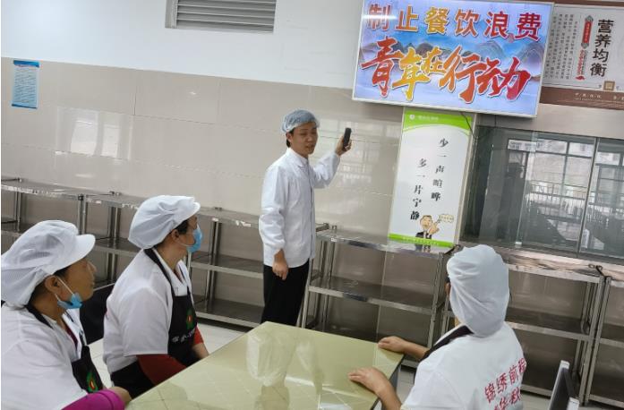 随后,大家认真集中观看了《制止餐饮浪费,青年在行动》短视频,大家立足岗位实际,就如何厉行节约、反对浪费开展了认真讨论。食堂师傅们建议,在菜品加工方面,可以根据学生整体就餐情况确定当天的食材用量;设置加餐台,及时补充菜品,确保师生既能吃饱,又不浪费。