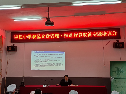 为进一步加强学校食堂规范管理,有效推进学生营养改善工作。11月23日上午,从江县宰便中学召开规范食堂管理·推进营养改善专题二级培训会。食堂管理人员、食堂负责人、食堂操作人员参加了培训。