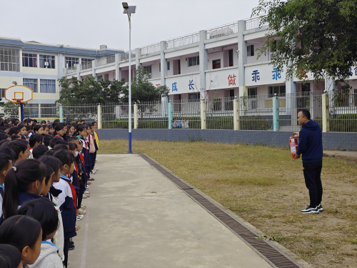 在消防演练中,学校村组长为学生们讲解火灾预防知识和灭火器的使用方法。学生们认真听讲,不仅熟练掌握了灭火器的使用方法,还了解了如何正确处理火灾事故。