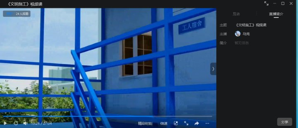截至目前,培训已如火如荼的开展3天。此次培训采用在线播放视频方式,围绕“落实”二字,从安全管理、文明施工、脚手架、消防安全4大方面展开,涵盖模板支架、高处作业、施工用电、塔式起重机等21项具体内容,对各项目做好安全生产工作具有很强的针对性和指导性。