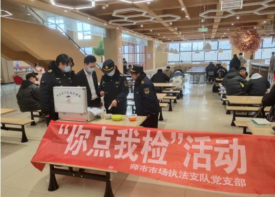 一、严格把关学校食堂食品相关原料;市场监管局的执法人员在高校食堂开展“你点我检”活动,对果蔬、食用油等一系列食品相关原料进行快速检测,并向食堂负责人、在校师生科普食品安全常识;