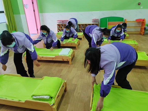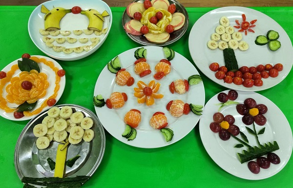 活动分为“叠被子”“擦桌子”“水果拼盘”三个项目开展,现场评比保育老师在规定的时间内完成现场操作情况进行评分。