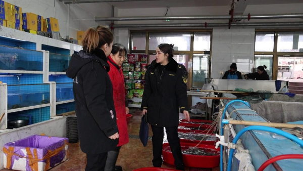 库车市市场监督管理局执法人员对市场农副产品销售档、水产品档所有食品、商品是否明码标价、肉类检疫合格证、进货渠道等进行了重点检查,要求经营户要提高责任意识与诚信经营意识,不得随意哄抬物价。