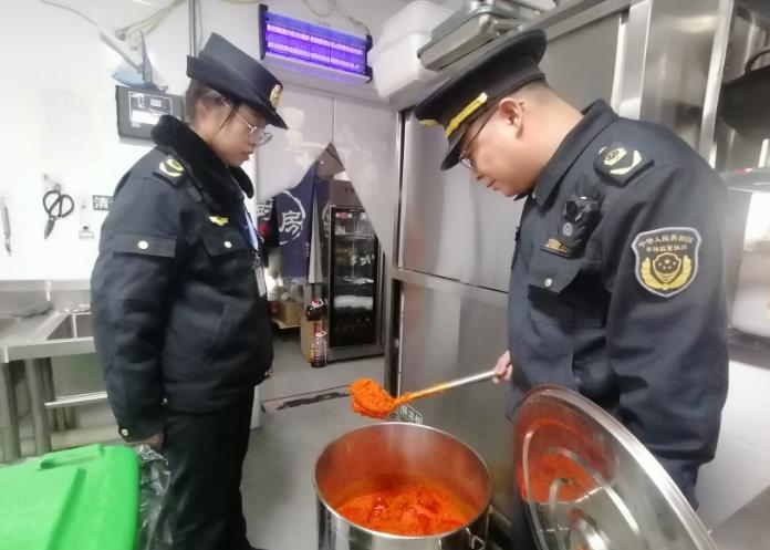 凛凛寒冬,火锅店、串串店成了人民群众常去消费的场所,在热闹的烟火气中,食品安全隐患也隐匿其中。为切实保障人民群众吃的放心,第一师市场监管局执法人员开展餐厨废弃物专项检查,对火锅店、大型餐饮单位深度排查,严格把控餐厨废弃物的管理。