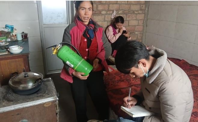 排查小组成员通过现场查看、设备使用等方式,对村委会、工作队宿舍楼、学校、居民点等重点区域进行了全覆盖安全隐患排查,排查中发现了诸如个别村民家中灭火器压力不够等一些问题。针对发现的消防安全隐患,村第一书记杨异要求大家务必按照消防安全规范,现场整改落实,坚决消除消防安全隐患。曲达村综治办也对相关消防基础设施做了详细记录,会及时安排修缮。