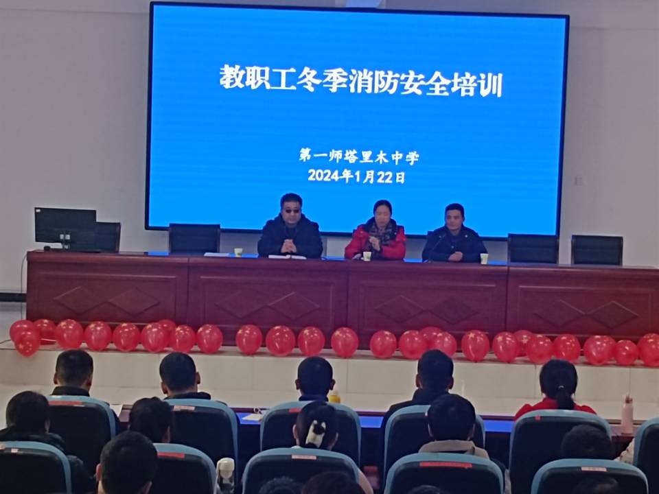 为进一步筑牢消防安全防线,提高全体教职工消防安全意识,构建“平安、和谐”校园,1月22日下午,第一师塔里木中学举行了教职工消防安全培训及灭火器使用实践活动,校领导及全体教职工共同参加。