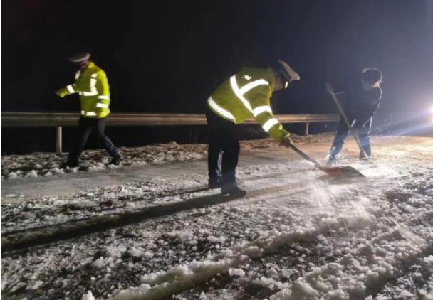 风雪中,武冈交警通过在路面洒盐、铲雪等方式清除积雪,消除路面道路交通安全隐患,同时针对发生结冰、积雪的重要道路,制定针对性的管控措施,加大国省县、城市主干道及高速公路出入口巡逻管控力度,强化桥梁、弯道、坡道以及易积雪、易结冰、临水临崖等重点路段巡逻管控和交通疏导,为遇到困难的民众提供帮助,确保辖区道路交通平安畅通。