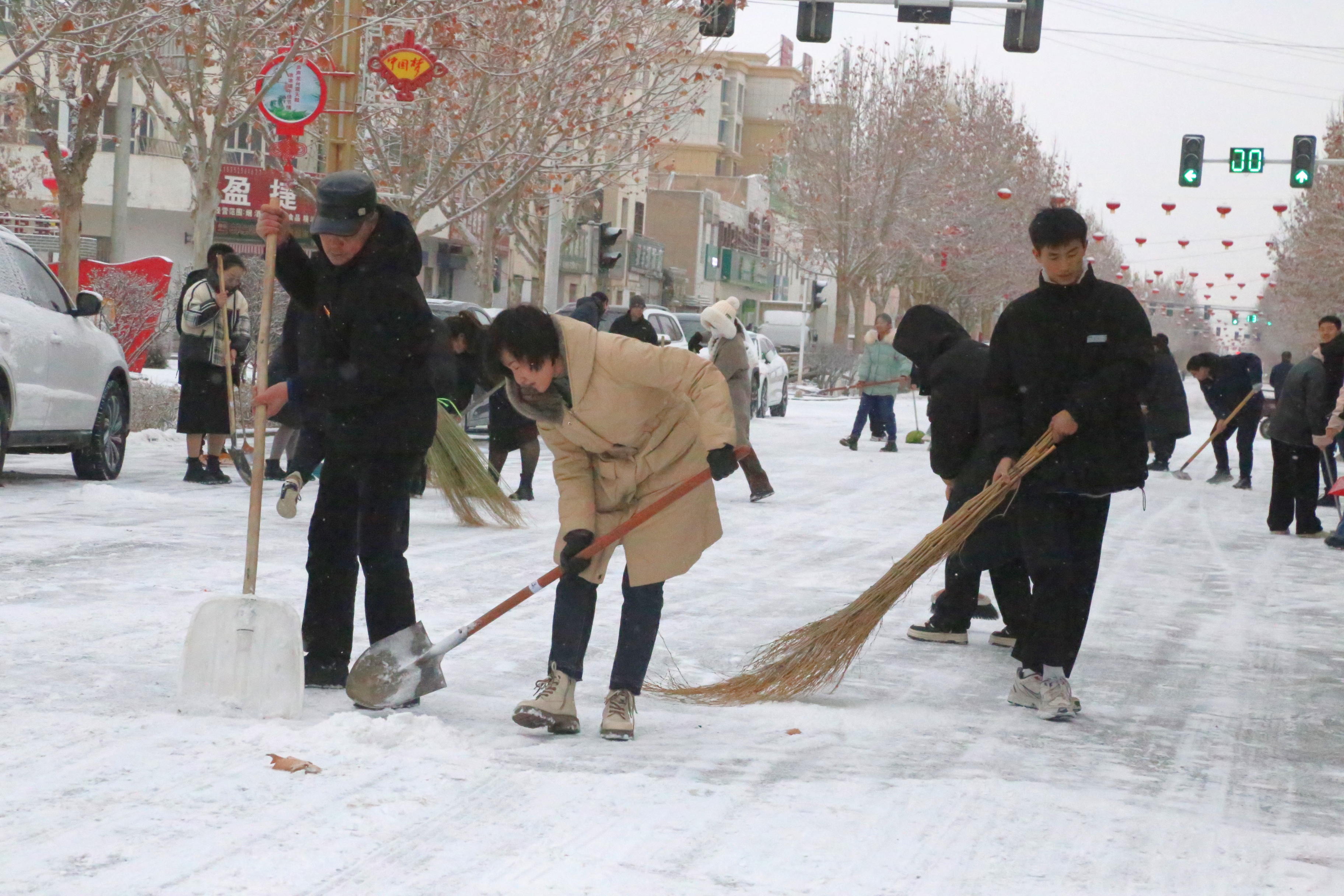 大家斗志昂扬,分工明确、齐心协力,铁锹翻飞、扫帚舞动,忙碌的身影构成了一道亮丽的风景线。不一会儿,就将原本积雪覆盖的路面清扫得干干净净,确保了居民的日常出行安全,用实际行动向辖区居民传递了冬日里的温暖与关怀。