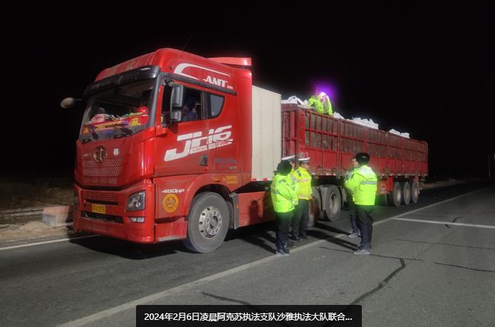 近期,沙雅执法大队执法人员在路政巡查中发现,正常工作时间段内公路货运违法超限超载现象大幅减少,但却存在部分货车与交通执法部门玩起了“猫捉老鼠”的游戏,利用夜间等非工作时间段违法运输。针对上述现象,沙雅执法大队联合沙雅县公安交警开展了弹性工作制的“午夜治超行动”,着力打击夜间辖区公路货运车辆违法超载超限行为,进一步强化春运期间道路交通安全和群众平安出行。