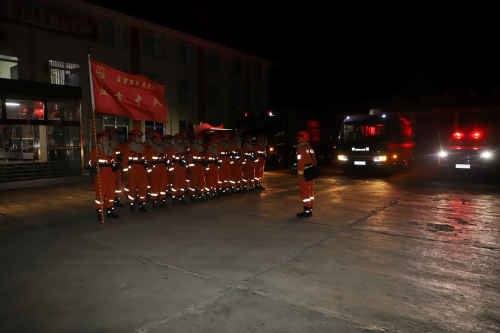 嘟、嘟、嘟……紧急集合,急促的哨声响彻整个营区,伴随而来的是一阵阵响亮的脚步声,不到一分钟,身着橙色灭火服的消防员整齐划一集结在大厅前,走近一看,原来是昌都市森林消防支队左贡县中队正在开展夜间灭火拉动演练。