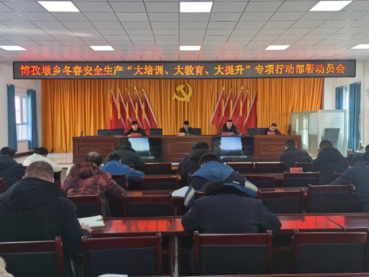 一、聚焦“部署安排”环节,在思想行动上再统一。深刻认识开展“大培训、大教育、大提升”的重大意义,乡党委主要领导高度重视专项行动,定期过问进展情况,先后2次作出批示;分管领导主动靠前、一线指挥,前后6次调度掌握各村工作开展情况,提要求、抓落实。迅速行动,制定了《博孜墩乡冬春安全生产“大培训、大教育、大提升”专项行动实施方案》,明确了工作目标、学习重点、方法步骤、工作时限,确保工作部署、落实结果,有人督促检查、有人跟踪问效。1月26日组织召开专项行动动员部署会,会上集中观看了《生命重于泰山》专题电视片,传达学习了习近平总书记关于云南昭通市镇雄县山体滑坡重要指示精神、江西新余市渝水区一临街店铺火灾事故重要指示精神、《国务院安委会安全生产15条措施》,坚决确保思想行动高度统一。