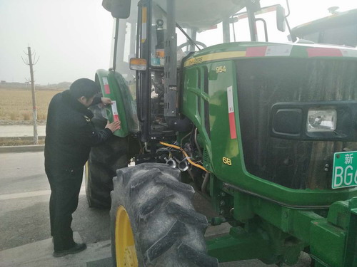 阿拉尔市金耕农机服务农民专业合作社负责人王飞说:“现在的政策越来越好了,工作人员送检上门,服务很快,也很方便,还给我们培训了很多农具使用技术、知识,春耕生产更有保障了,我们要好好干,带动更多的群众致富。”