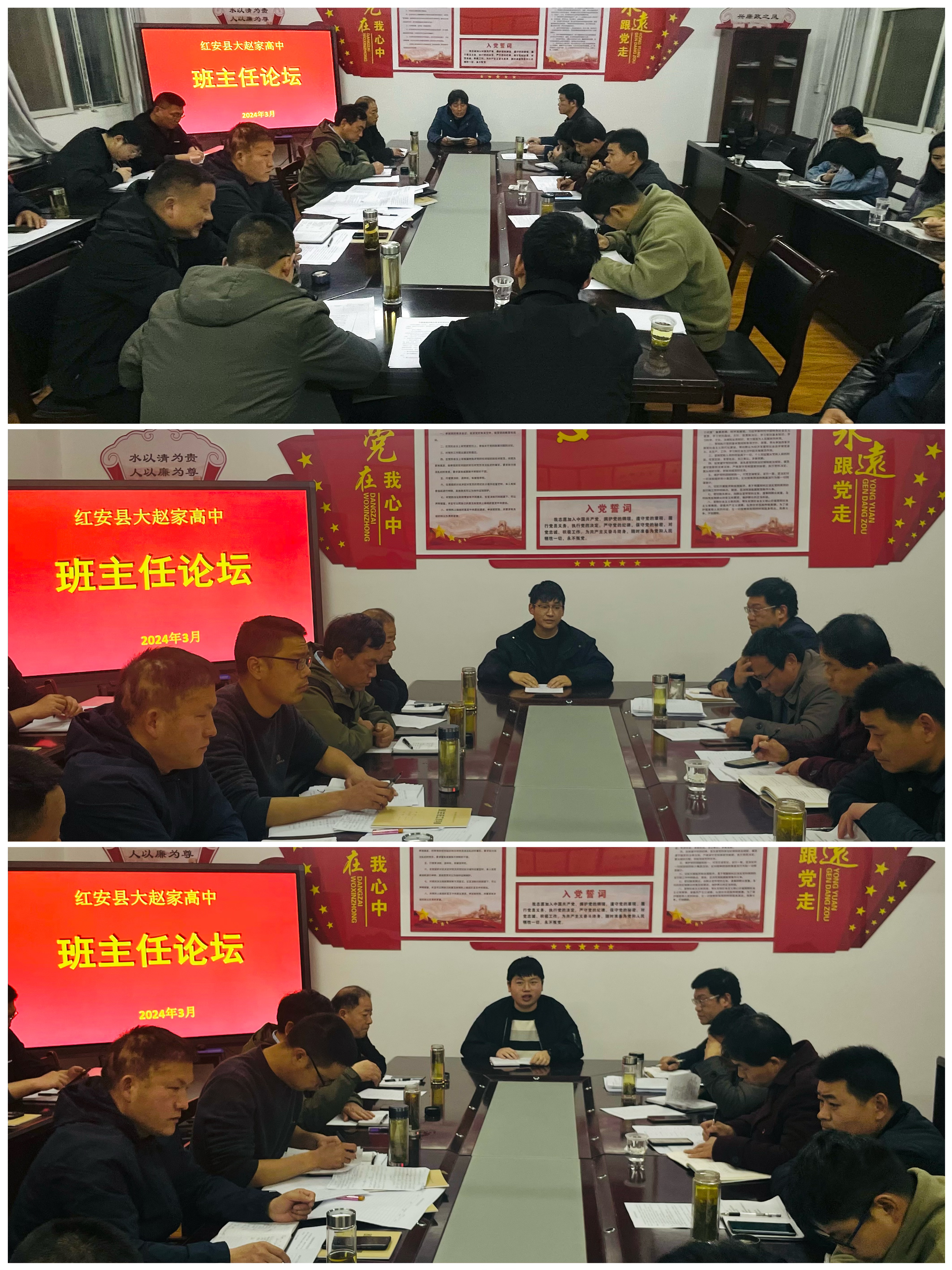 3月14日晚,大赵家高中召开2024年春季班主任论坛暨德育安全工作会,全体班子成员、班主任、宿管员及安保人员参加会议。