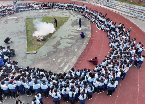 2024年3月14日,学生在贵州省黔东南苗族侗族自治州从江县下江中学参加安全演练活动。