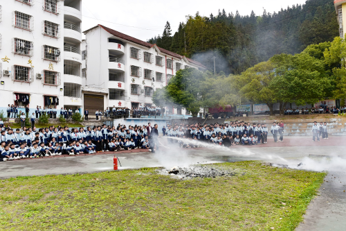 当日,贵州省从江县下江镇派出所联合消防救援站等多部门到下江中学开展消防安全知识培训及应急疏散演练活动,增强师生安全意识 提升逃生自救能力。