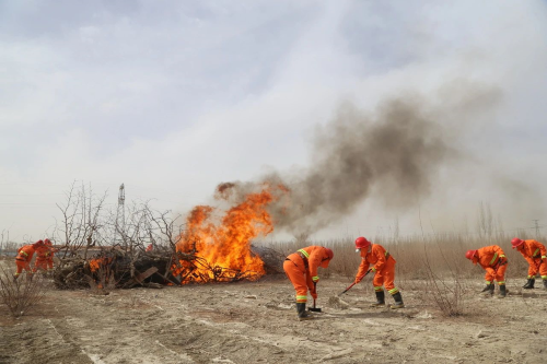 为进一步增强森林火灾的应对处置能力,提升各部门间的协同配合能力,确保森林资源和人民群众生命财产安全,3月22日,新疆生产建设兵团第一师阿拉尔市九团在10连(小微创业园)开展森林草原防灭火应急救援演练,九团党委常委、副团长杨玉萍任现场总指挥,团森防指成员部门、派出所、医院,团半专业应急救援队,10连救援分队,各单位连长、负责林草工作的两委、兼职护林人员,共180余人参加演练。