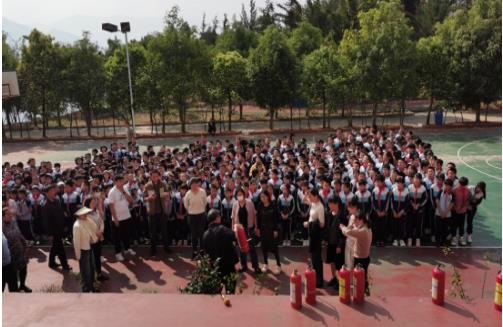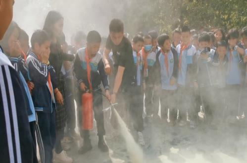 安全演练结束后全体师生进行了消防演练,字光增主任向全体师生讲解消防知识,介绍了灭火器的结构及使用方法,并示范操作使用,示范后由各班主任熟悉灭火器的使用并带领同学按班级进行实操演练。