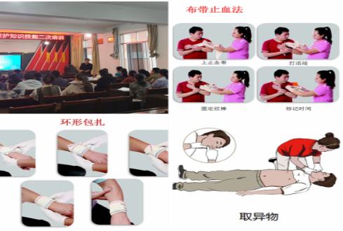 培训开始,鲁史中心学校办公室主任字光增先向老师们介绍了应急救护的定义、目的及救护原则,并通过列举身边发生的意外事件告诉老师们掌握应急救护知识技能的必要性。接着向老师们讲解了创伤救护技术:创伤出血与止血办法,并强调止血带止血法注意事项:止血带不能直接结扎在皮肤上,要加衬垫;上肢出血扎在上臂上1/3处、下肢出血扎在大腿中上部;松紧适度,以伤口停止出血为度;做好明显标记,注明结扎止血带时间(***到分钟);结扎止血带后每隔40~50分钟或发现远端肢体变凉应松解一次;应尽快送伤病员去医院救治;禁止用铁丝、电线、绳索等当做止血带。