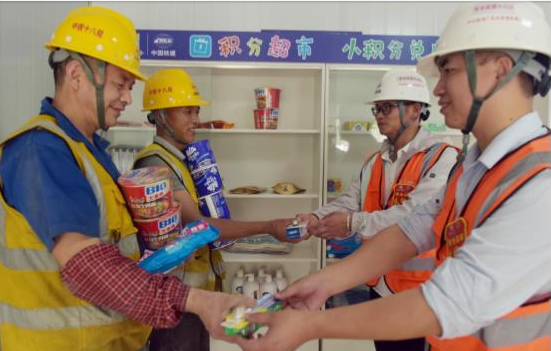 广东云浮电(李广彦 孔凡虎)严格遵守安全规程,发现不安全隐患及时报告,有谁违反安全操作规程当场指出,自己就能得到一定积分,日积月累,用积分就近在工地“超市”兑换生活用品或食品,这已成了中铁十八局集团环北部湾广东水资源配置工程A2标项目部农民工林伟余的生活习惯。五一节前夕,他又换来牙膏、卫生纸、方便面,开心度过“劳动节。