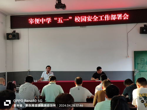 为了让全体师生度过一个平安的假期,4月28日下午,宰便中学召开2024年“五一”假期校园安全工作部署会。会议由杨光仕副校长主持。