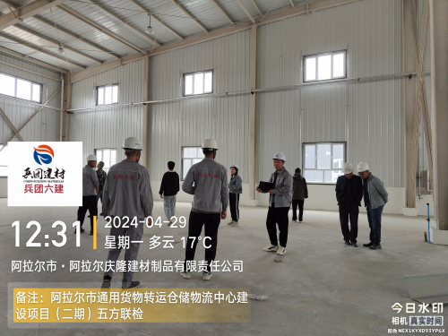 4月29日,兵团六建第一工程公司阿拉尔市盛任物流仓储中心建设项目顺利通过五方联合验收。项目建设、勘察、设计、监理及施工单位五方责任主体现场负责人召开项目验收会议,并进行了现场联合验收。