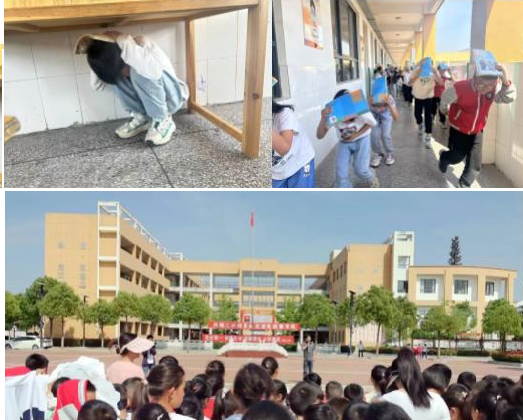 大课间随着第一声警报声响起,演练正式开始,各班教师立即停止所有活动,指导学生就近躲避,用双臂保护好头部,迅速躲在桌下、墙角等安全三角区,进行紧急避险。30秒后,第二声警报响起,各班学生在老师的指挥下,按照预定的疏散路线,抱头弯腰快速有序地从教室撤离到操场。这次演练活动全校1500余名学生从教室撤离到操场只用了3分多钟,整个演习活动紧张有序,有条不紊,达到了演练的预期效果。