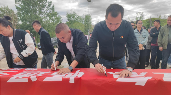仪式接近尾声,全体干部在“安全生产月”主题横幅上签字,许下“安全承诺”,讲一句与安全应急有关的话语,并现场实操正确使用灭火器、心肺复苏等应急措施,以实际行动表明全员参与、提高安全意识、遵章守纪从我做起的信心与决心,切实达到“人人讲安全、个个会应急”的效果。(通讯员:兰晓明、石德鹏)