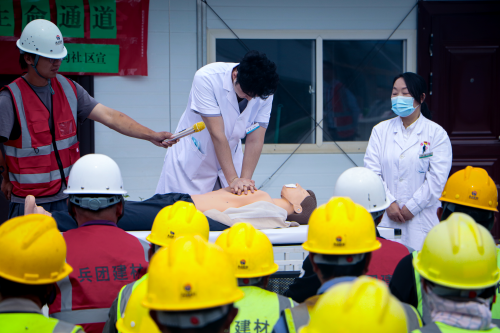随后,建工师医院医生利用专业的医疗假人模型,现场模拟演示了心肺复苏(CPR)的手法技巧、关键救治时间、步骤和要点,从判断意识、呼叫救援到实施胸外按压和人工呼吸,每一步都严谨细致,确保每一位观众都能清晰明了地掌握。强调了急救过程中的时间重要性,指出在“黄金四分钟”内实施CPR能够大大提高患者的存活率。