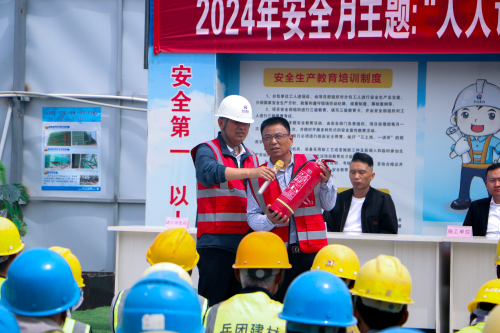 启动仪式上,项目负责人发表了热情洋溢的动员讲话,他强调了安全生产的重要性,并详细讲解了灭火器的正确使用方法,确保每位在场人员都能熟练掌握基本的消防技能,为应对突发火情做好准备。