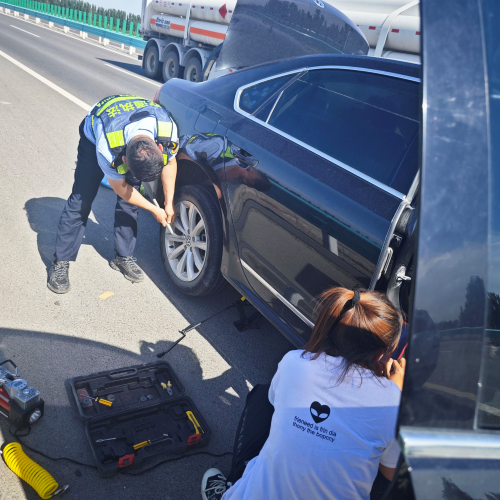 两名执法人员了解情况后,得知具体故障原因后,工作人员第一时间在车辆后方设置了安全警示标志,确保道路行车安全。随后,迅速帮助司机更换了备用轮胎,并对车辆进行了安全检查,确保车辆可以正常行驶。在更换轮胎的过程中,温宿执法大队工作人员表现出了高度的专业素养和服务意识,得到了司机的衷心感谢和赞扬。