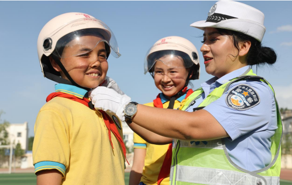 今年6月是第23个全国“安全生产月”,为进一步做好交通安全宣传活动,全面提高中小学生法律意识、文明意识和安全意识。6月3日,新疆乌什县公安局交通管理大队以“人人讲安全、个个会应急——畅通生命通道”为主题在乌什县第四小学开展交通安全进校园活动。