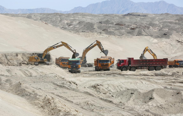 6月11日,在库沙公路一标段施工现场,机械轰鸣,一台台挖掘机、渣土车等大型机械持续作业,路基填方施工,桥涵台背回填,路容路貌修整工作正有序高效进行。