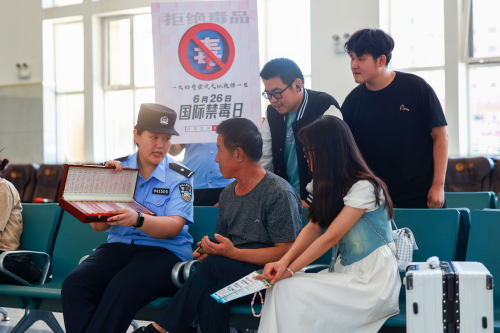 在第37个“6.26”国际禁毒日来临之际,包头铁路警方走进车站、走向列车,开展了形式多样的禁毒、防毒宣传活动。