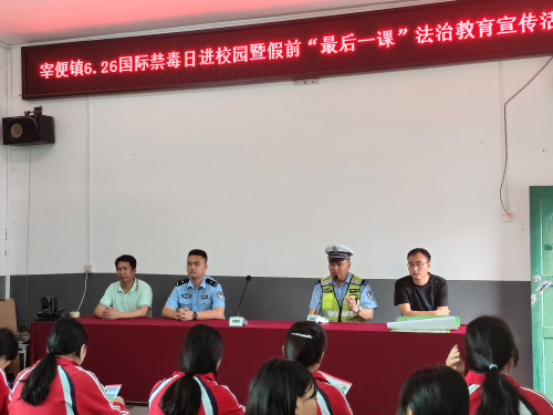 为了进一步增强学生禁毒防毒意识,增强学生的法治观念和法治意识,提高学生法律知识水平,6月26日,从江县宰便镇平安办、妇联、派出所等部门到从江县宰便中学开展国际禁毒日暨法治教育进校园宣传活动。
