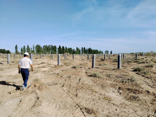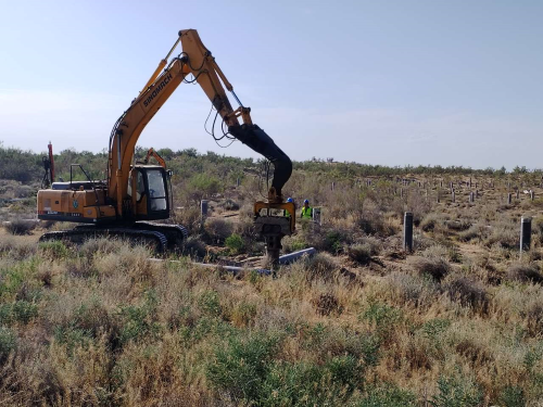 项目部于6月初获得施工任务以来,积极组织人员完成对本次施工现场地形地貌、环境因素、地质等情况的现场踏勘,加大对施工现场数据采集,配合设计院出图,积极组织现场管理人员建设位于玛纳斯县北五岔镇沙窝道村4标段项目部临舍,时刻跟进项目推进情况,并于6月初确定施工队伍,6月12日施工队伍正式进场拉开施工序幕。该项目工期6个月,12月底达到调试及试运行阶段。目前正在紧张有序的开展第一阶段基础施工任务,标段总工程量30000根桩,截止目前机械已投入装载机4台,引孔机13台,打桩机10台,洒水车2台,各种施工工人42人,现施工放15000个点位,引孔打桩4080根桩。(通讯员:龙文芳)