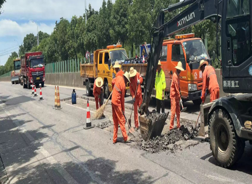 近日,烈日炎炎,温度高达35摄氏度以上,在荆松一级公路段,路面摆放着锥形桶,几名工人在挖掘机的作业下,正在对路面病害区域进行处置作业。“本次工作已进行了近40天。经修补后,有效保护了荆松一级公路路面基层,消除行车安全隐患,提升了车辆行驶舒适度,延长了公路路面使用年限。”荆松公司相关负责人表示。