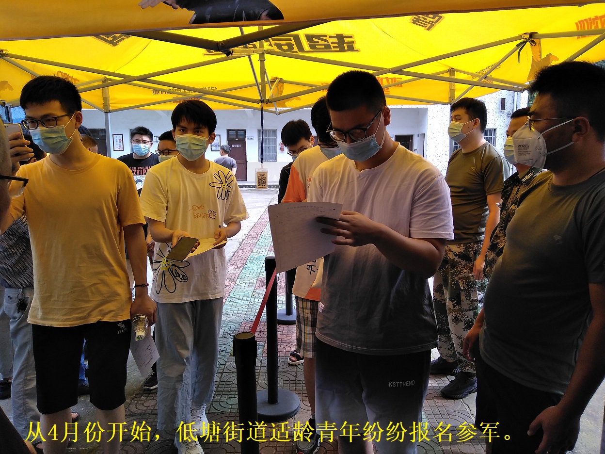 为圆满完成今年的征兵任务,低塘街道一方面强化宣传发动,通过电视、微信、宣传横幅以及进村入户发放宣传资料等途径,大力宣传征兵工作,全面提高辖区居民对征兵工作的知晓率,激发适龄青年参军热情,营造“保家卫国,人人有责”、“一人参军,全家光荣”的浓厚氛围;另一方面积极鼓励大学生或大学新生应征入伍,确保把思想优、政治硬、文化高、身体好的优秀青年输送到部队中去。