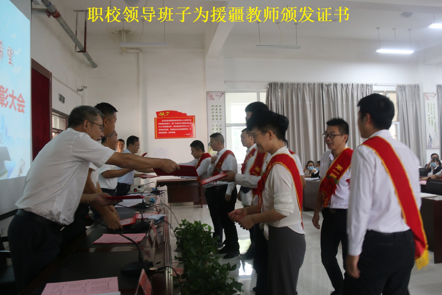 校领导为他们颁发聘书。