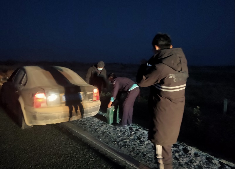 因地处偏僻没有确切的求助信息,再加上夜深天冷,电话里也能感觉到求助人非常着急,沙雅县公安局喀斯汗派出所接到求助后,立即安排一组救助警力带上10升汽油前往G210国道进行搜救,一组警力再次联系寻找报警人明确地理位置。约20分钟后,民警找到报警人张某,并其为车辆加满油,使张某安全上路。